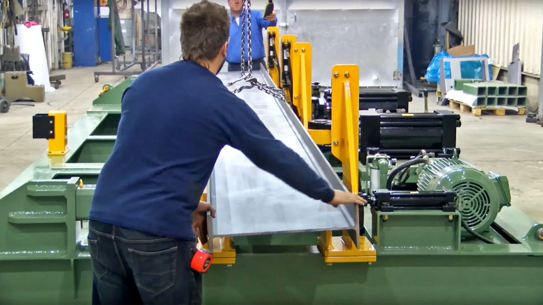 Die Bay-Lynx Biegemaschine kann so konzipiert werden, dass sie sich in Ihren Fertigungsprozess einfügt, indem sie Rollen und Zylinder verwendet, um die Maschine anzuheben und die Biegung herzustellen.