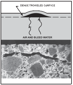 If bleed does occur, ensure that the finishers do NOT proceed to the finishing stages. Bleed can have almost no effect on the end result of concrete if you just wait a little while before troweling and finishing the concrete. The best approach is to wait and let the water evaporate. If the finisher begins to finish the concrete with the bleed water present, the water will be forced into the top layer and will drastically weaken the concrete.