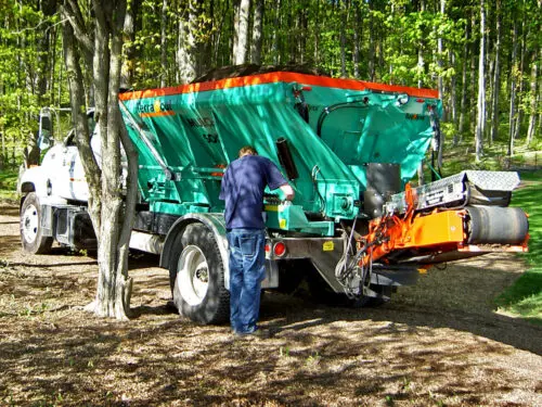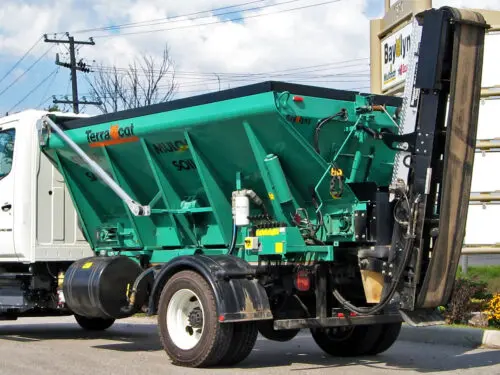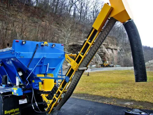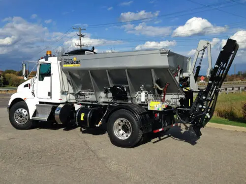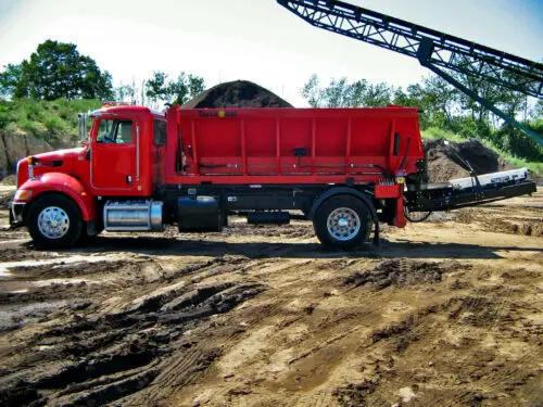 2.5 meter lange snelwerpband voor het verspreiden van diverse materialen tot 20 meter van de achterkant van de vrachtwagen.