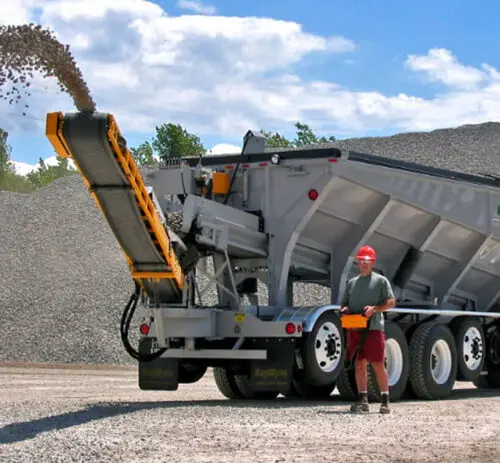 Our patented interior load suspension beam breaks up clumps, bridges and even frozen chunks of material in your load. That means you can deliver and place stone, sand, aggregate, mulch, topsoil and much more, at any time of year.