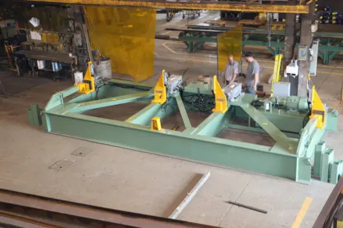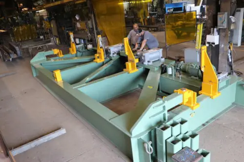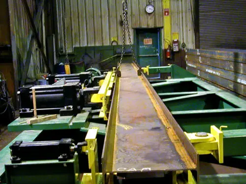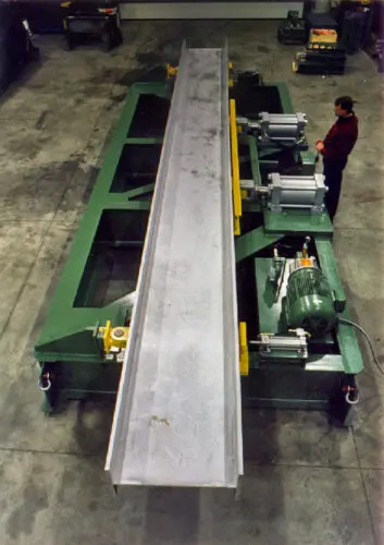 Die Bay-Lynx Biegemaschine kann so konzipiert werden, dass sie sich in Ihren Fertigungsprozess einfügt, indem sie Rollen und Zylinder verwendet, um die Maschine anzuheben und die Biegung herzustellen.