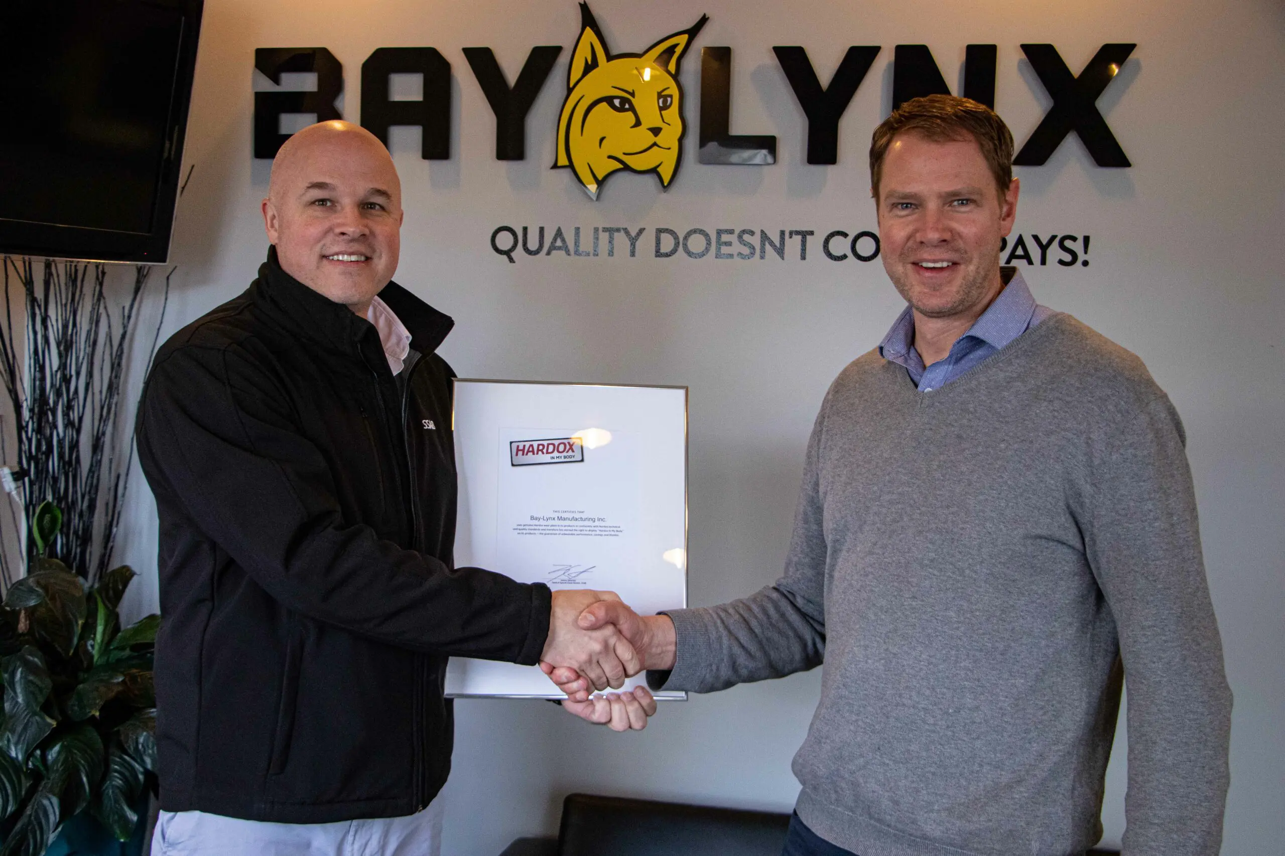 The Titan Mixer is the only mixer in North America that is part of the Hardox® In My Body program. Each Titan is fitted with the official Hardox® In My Body sticker, verifying its premium build quality. To be a part of this program not only does Hardox® wear plate need to be the primary ingredient, but it must also be a top of the line product where the company puts quality first with excellent industry reputation. It is a sign of quality and trust for the best products on the market and the Bay-Lynx Titan Volumetric Mixer is very proud to be a part of the program.
