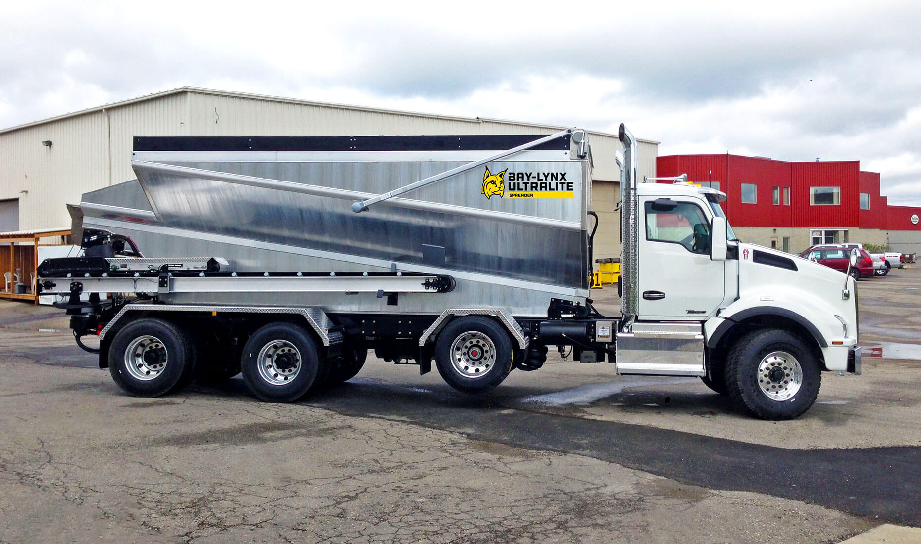Bay-Lynx est le seul à vendre le Crossfire, un mini-épandeur qui peut être attaché sur une chargeuse à direction à glissement ou une chargeuse frontale pour les travaux d'épandage de plus petite ampleur.
