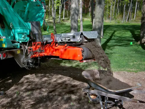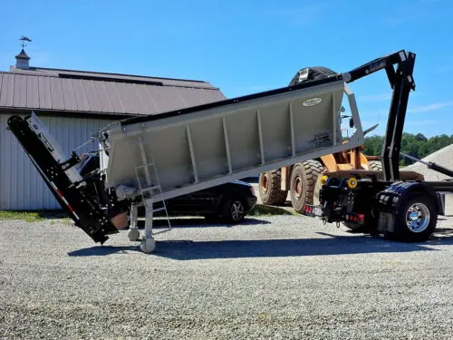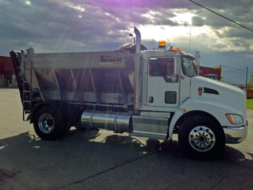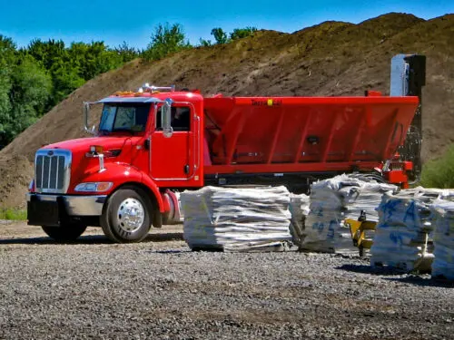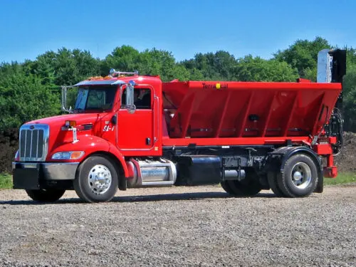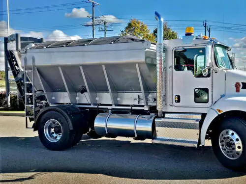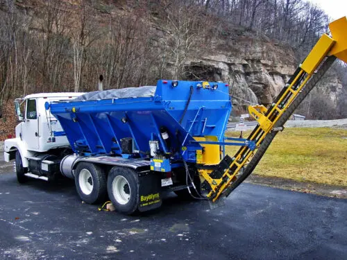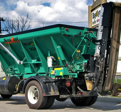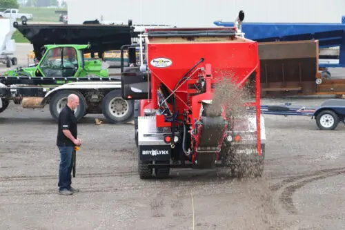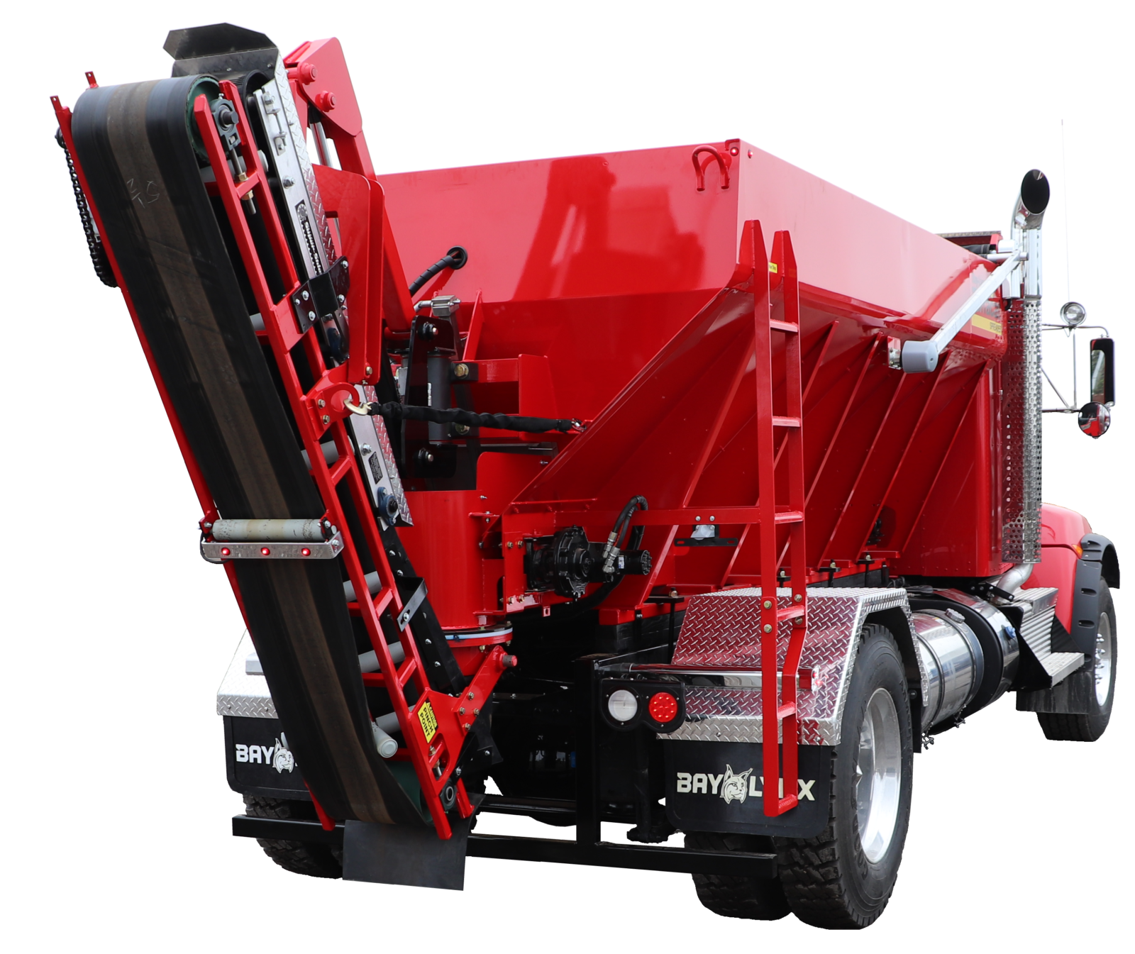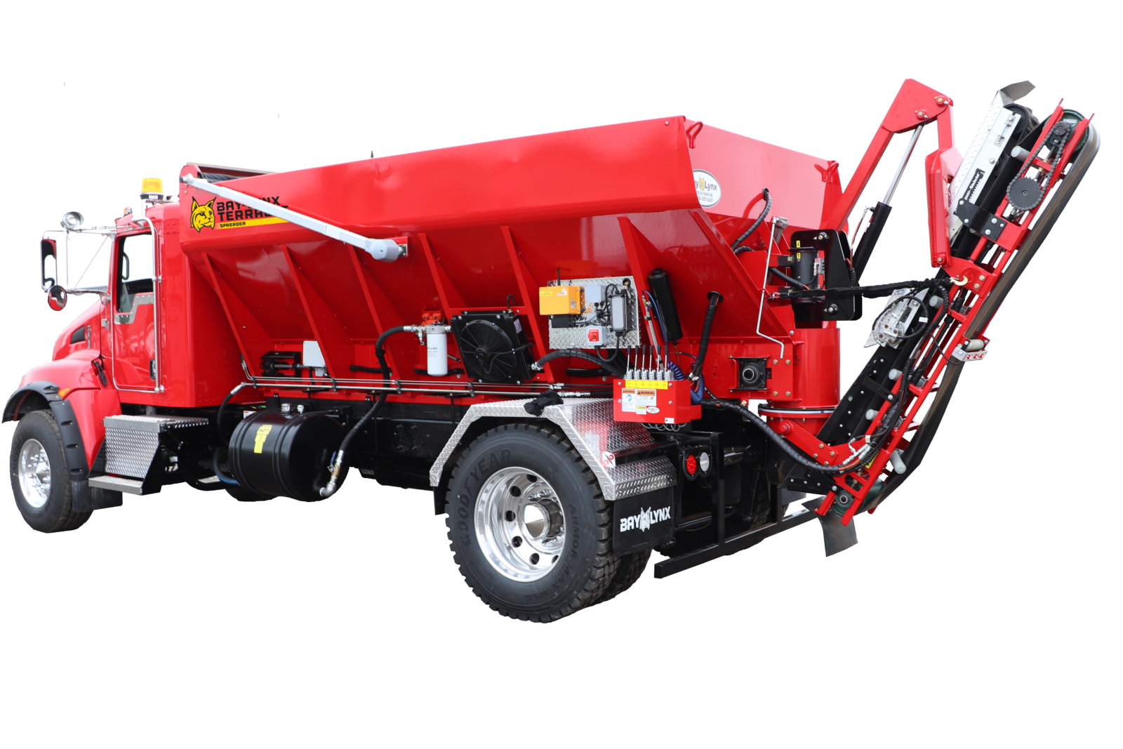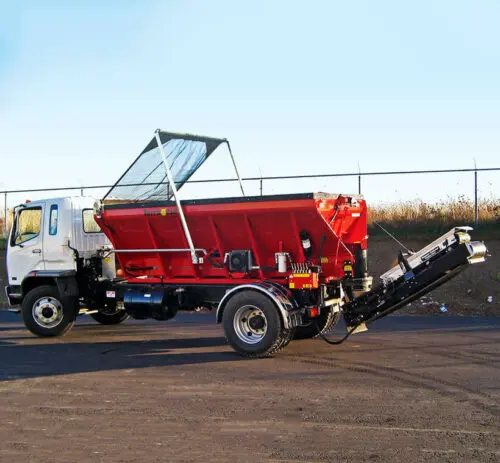 2.5 meter lange snelwerpband voor het verspreiden van diverse materialen tot 20 meter van de achterkant van de vrachtwagen.