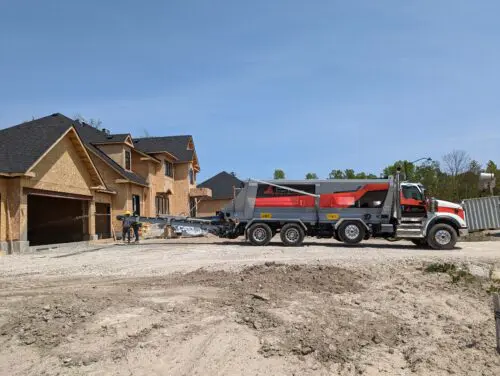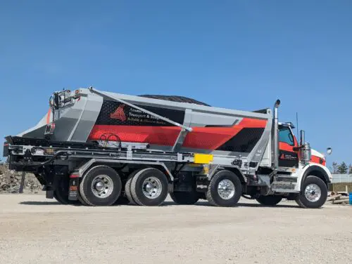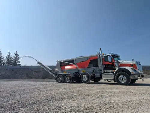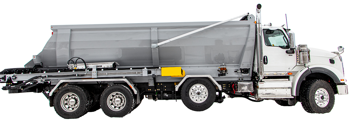 The Atlas Live Bottom is the safest way to deliver soil, sand, stone, asphalt, etc. Designed with a Hardox® 450 shell, the Atlas is able to both directly drop your material as well as throw your material in a manner that is safe for everyone on site. No more risky large dump trucks with the fear of falling over on unpredictable site grounds. Just a clean, safe and reliable delivery.