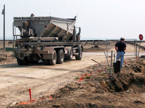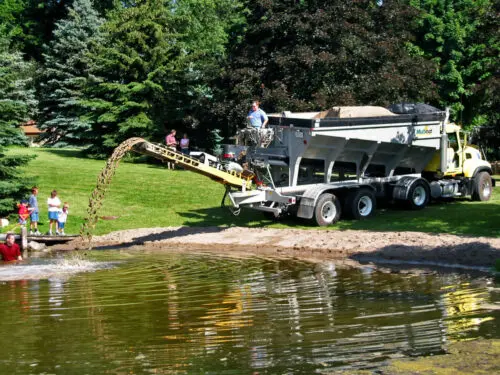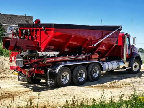 Our patented interior load suspension beam breaks up clumps, bridges and even frozen chunks of material in your load. That means you can deliver and place stone, sand, aggregate, mulch, topsoil and much more, at any time of year.