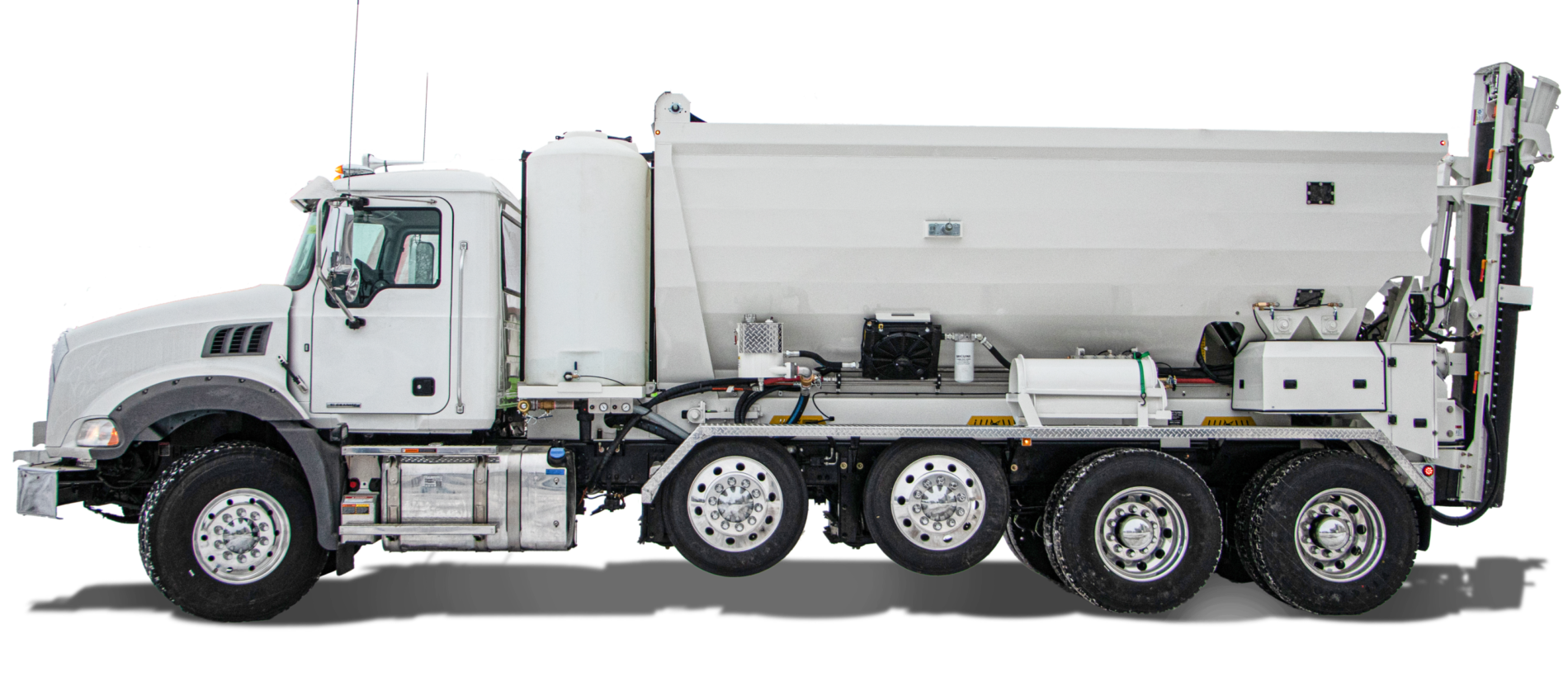 Volumetric mixers save you the trips back to the batch plant, and make sure that the concrete you pour is the exact mix the job requires. A volumetric mixer precisely meters out cement, sand, stone and water on-site. No mixing as you drive. No getting stuck in traffic while the mix in the back hardens and changes. Just a continuous flow of fresh-mixed, perfectly proportioned concrete.